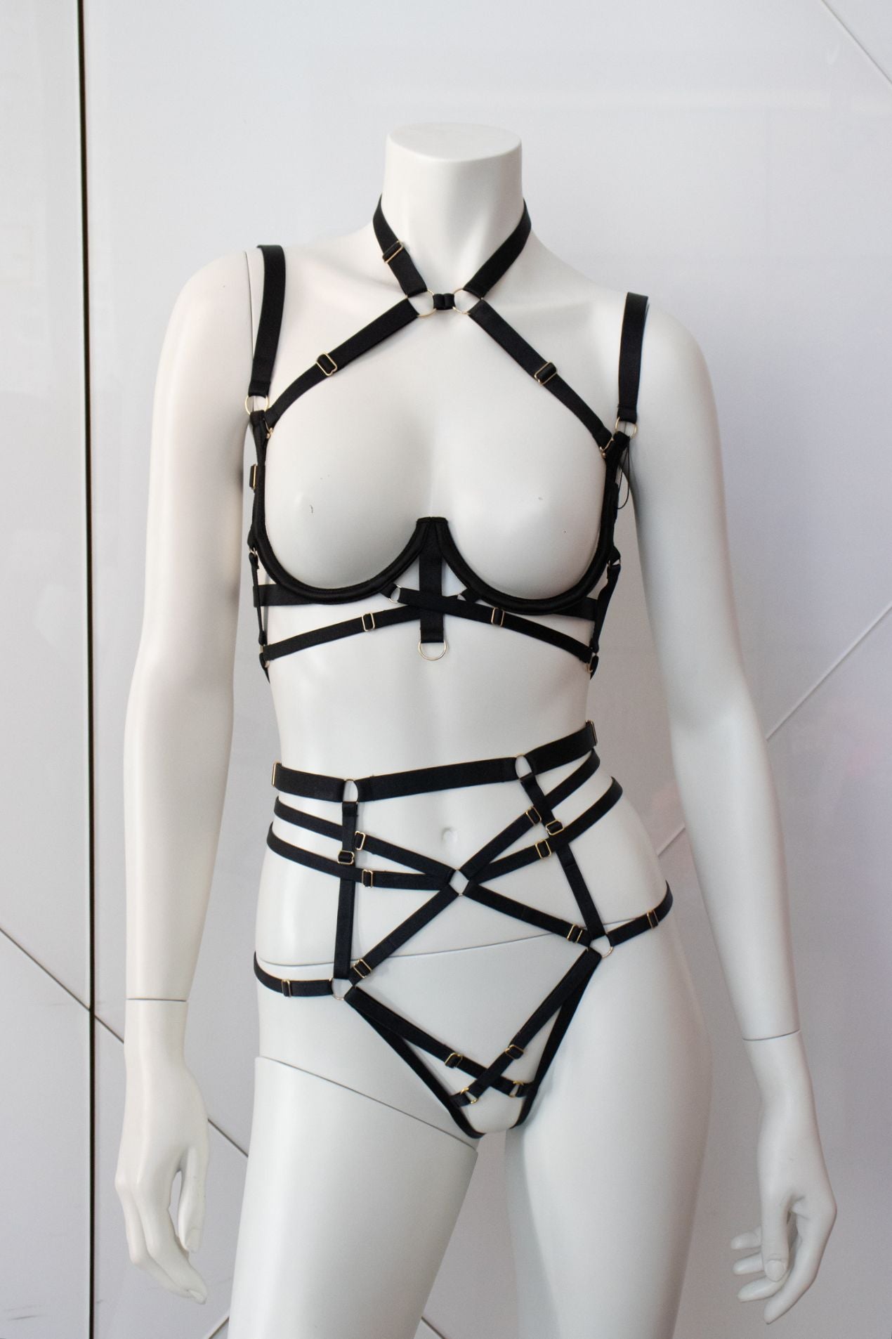 Archive Addict Set Open Choker Bra & High Waisted Knicker