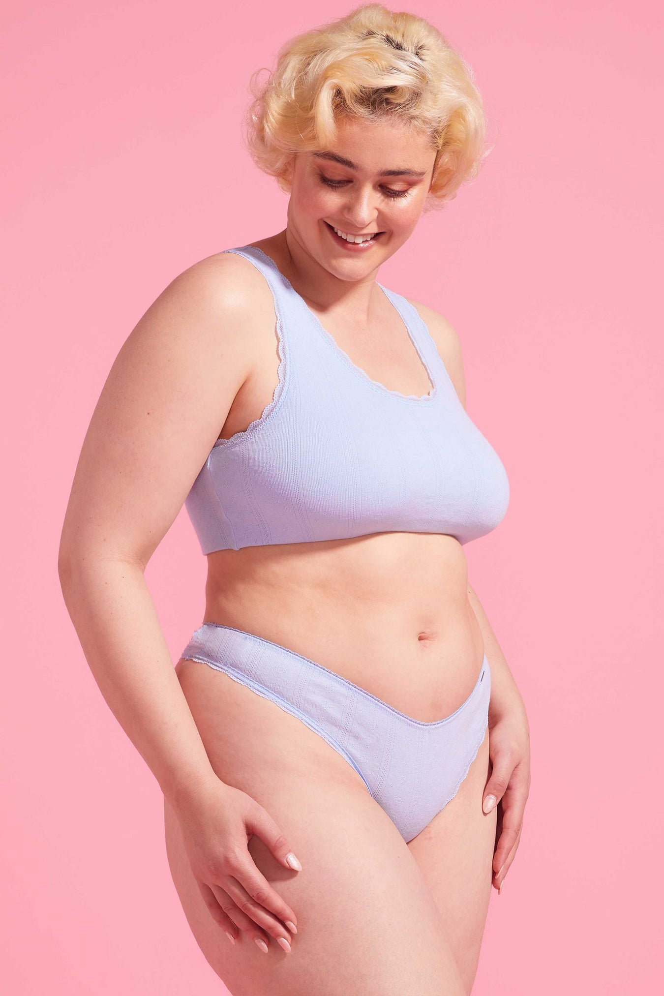 Choose ultimate comfort and style with our G-string. Its mid-rise silhouette, complemented by a barely-there back, artfully showcases and enhances your curves. Delicate scalloped trims lend an extra touch of elegance, while the breathable pointelle cotton fabric provides a breathable feel. A signature "Eleven" charm provides a luxurious finish.