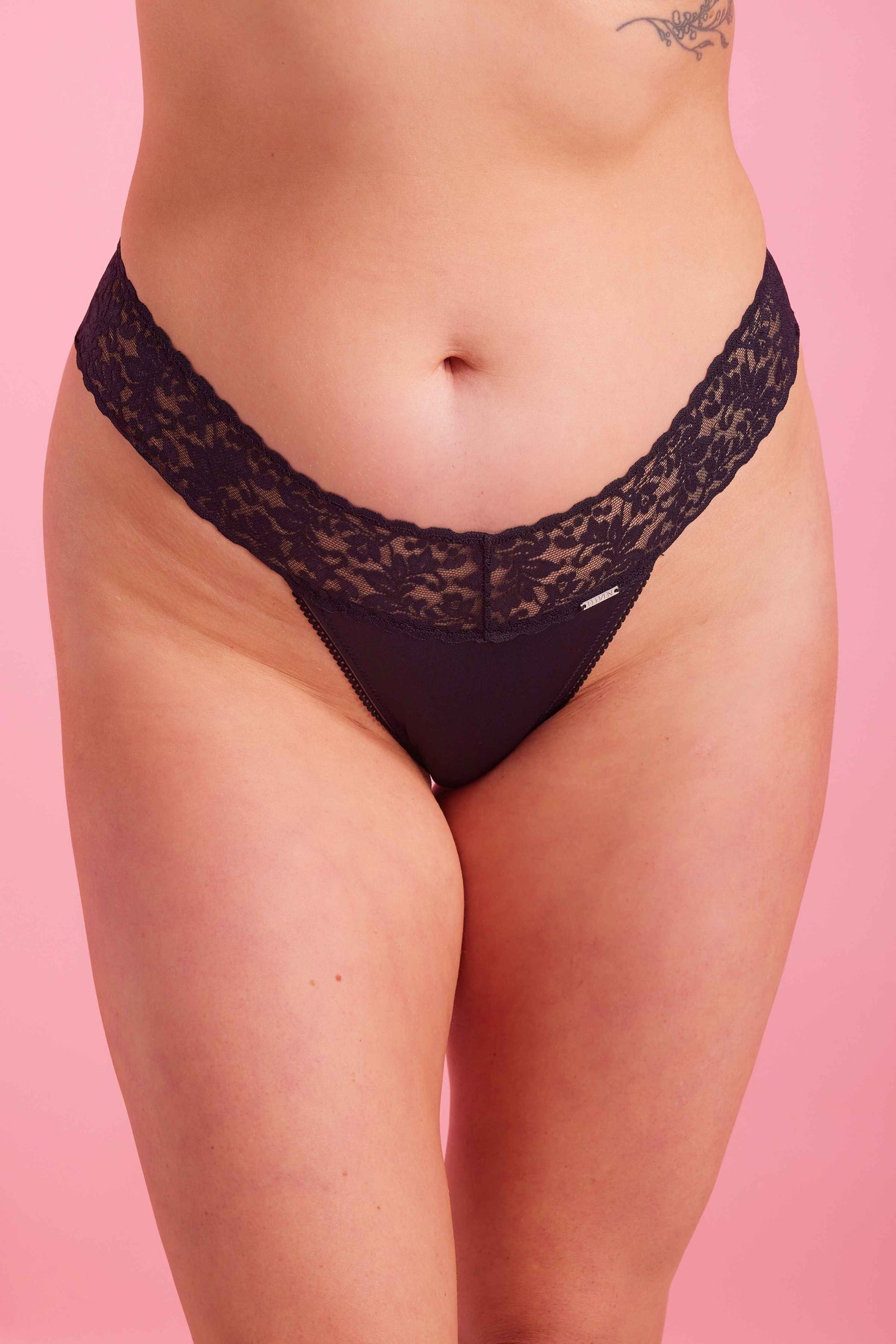 Crafted for distinction, our black g-string marries plush microfiber with feminine floral lace, sculpting your form with finesse. Not only a statement style, it promises day-long comfort. Pair with our matching demi cup bra or longline bralette, it's the epitome of luxury.
