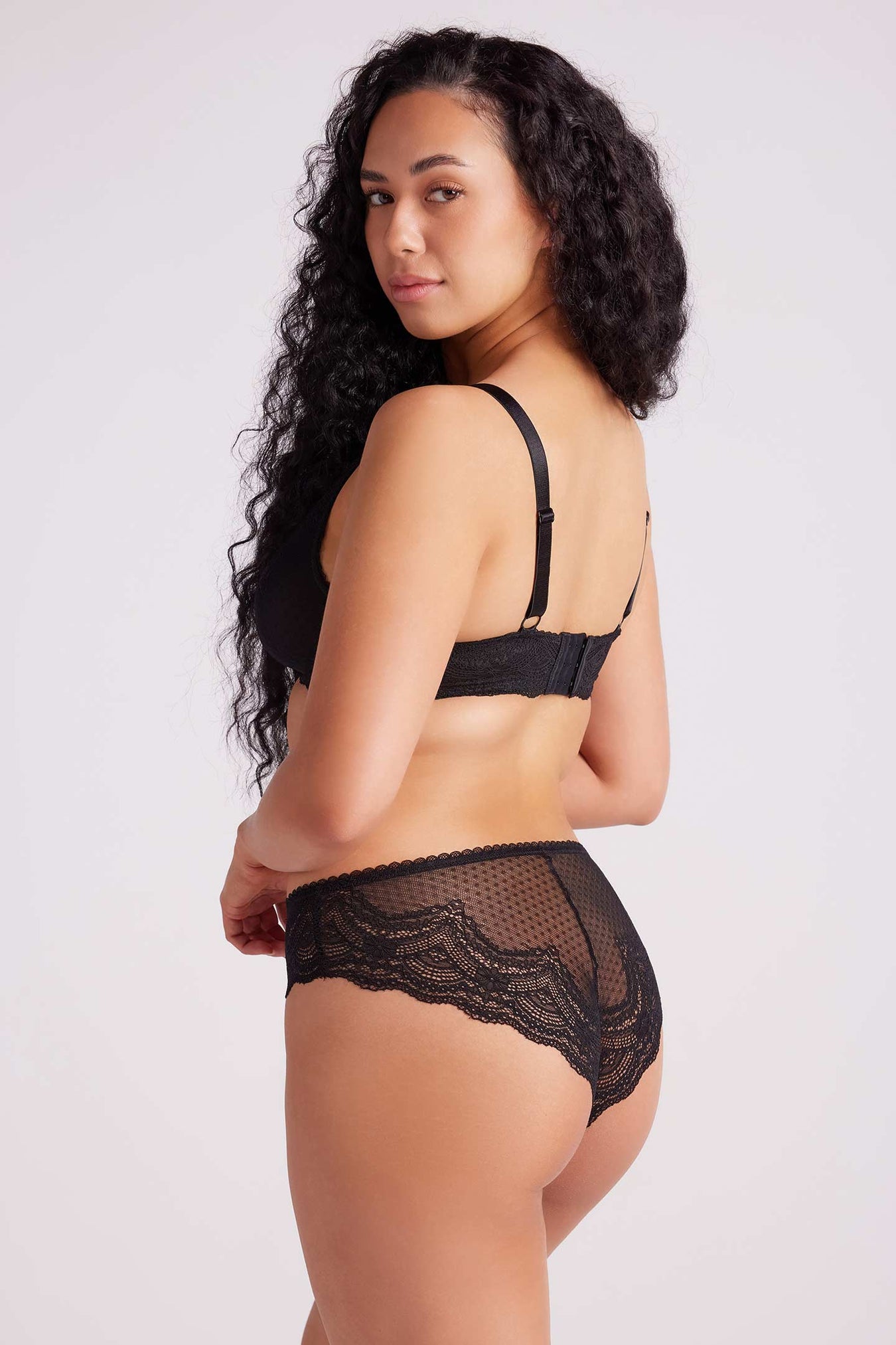 Feel sexy and comfortable in our lace bralette, they are the perfect combination for your everyday go to. Featuring a sheer but modest cheetah lace, matched with a floral lace waist band, delicate trim and engraved charm.