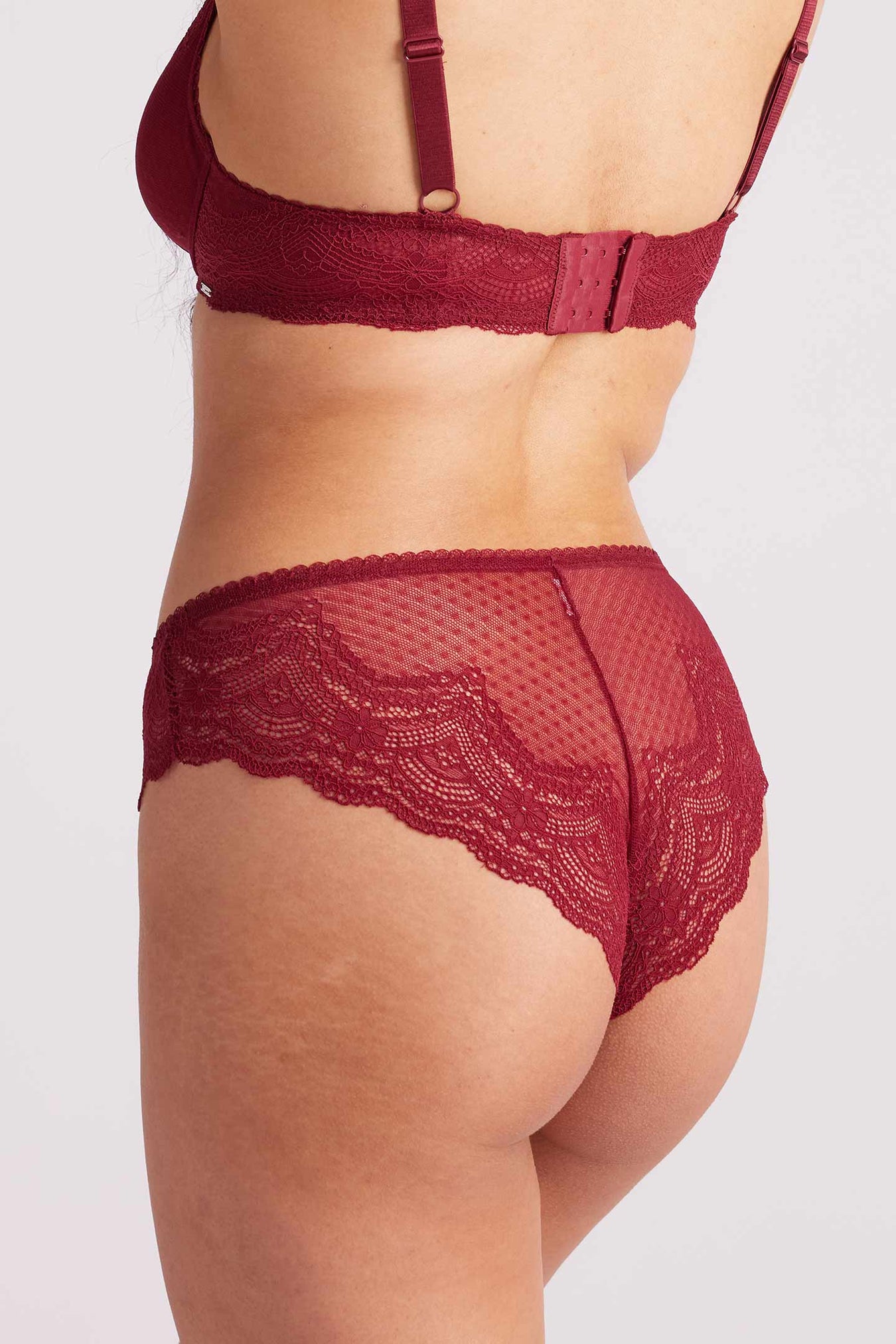 Luxurious lace meets a modern, flattering cut. The brazilian design offers both comfort and coverage, while the scalloped edges add a touch of flirtatious charm. Perfect for those who seek a blend of contemporary style and classic sophistication in their lingerie.