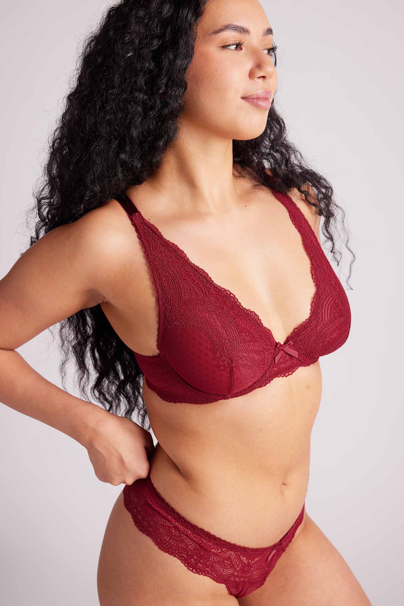 Embrace the timeless elegance of this lace plunge bra, a sexy staple for your lingerie repertoire. It elegantly fuses sophisticated lace with underwire support for a seductive, lift-enhancing effect. The combination of classic charm and feminine design results in a piece that offers both irresistible allure and reliable support.