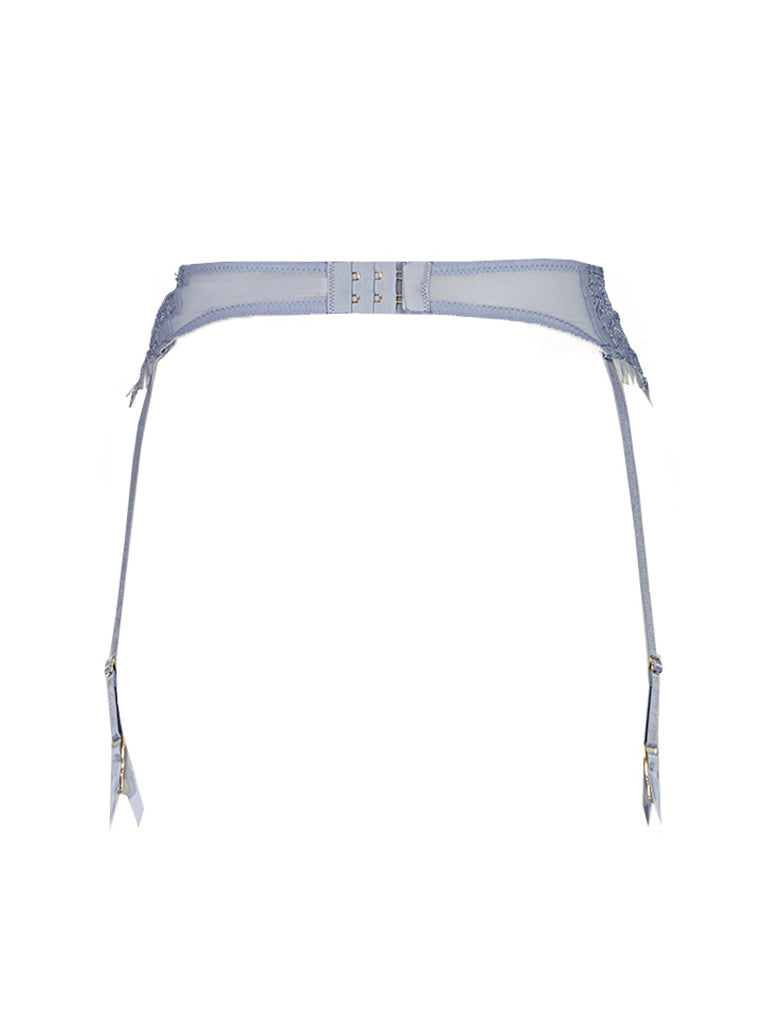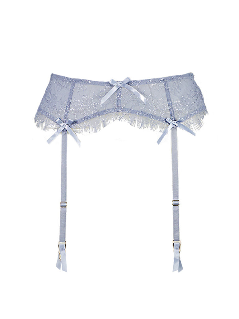 The Maia collection is effortlessly chic, combining delicate powder blue eyelash lace with soft mesh, satin bow accents and gold hardware to create stunning, romantic pieces. Based off the the best selling ‘Dolce’ the collection features a underwired balconette bra with non-padded, lightly lined cups for support and comfort, with a soft mesh back and hook & eye closure. As well as a powder blue classic style suspender, g-string / thong and higher rise brazilian knicker with adjustable straps.
