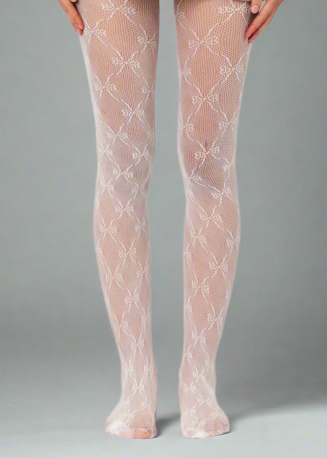Pantyhose Fishnet Bow Print White