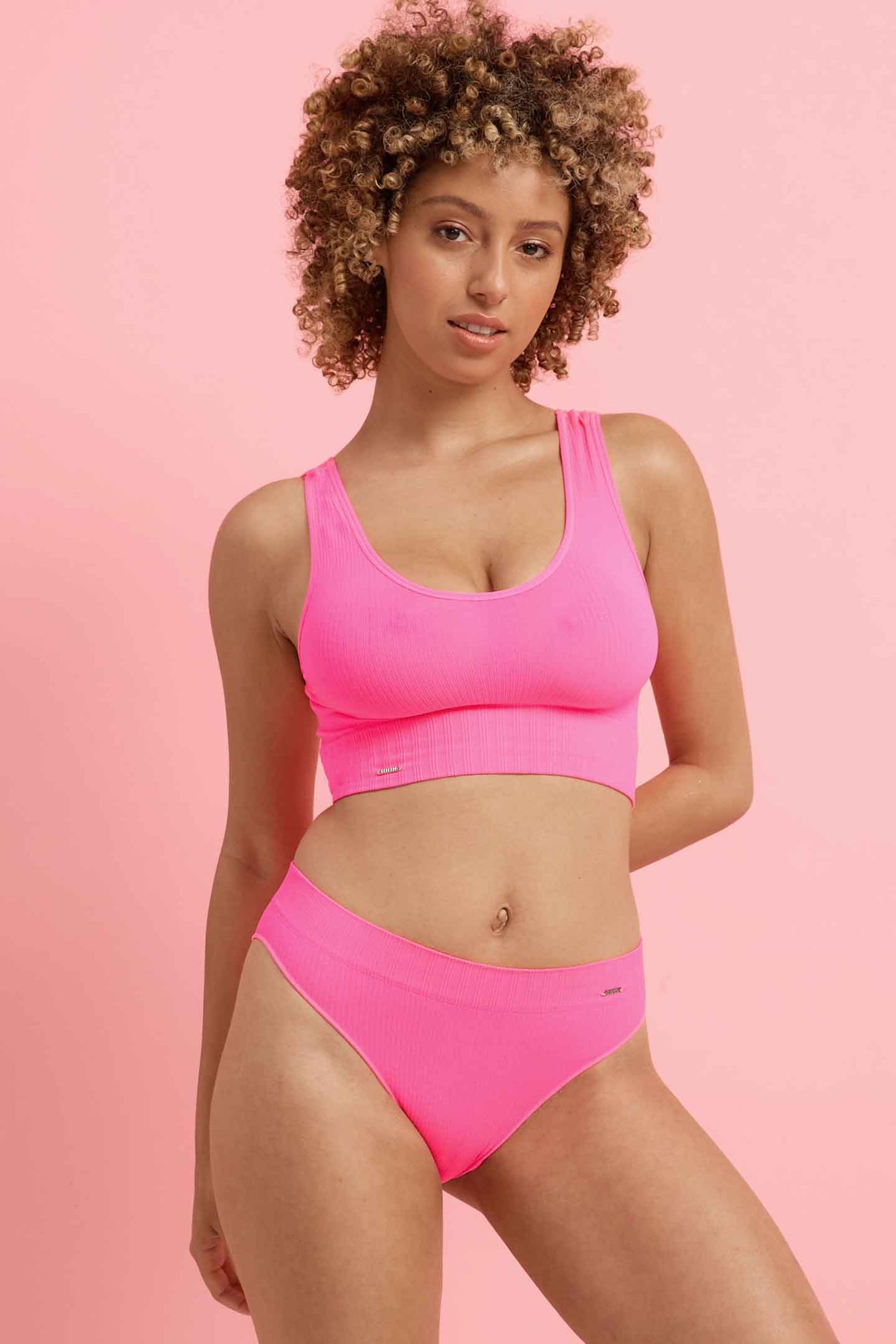 Spruce up your lingerie drawer with these knockout pink Brazilian briefs. Tailored with circular knit technology, this pair features a seamless silhouette and a cut that flaunts your cheeky side. This style and fabric accentuates your curves while delivering the same luxe comfort you adore. Ideal for those moments when you want a little more coverage but with an added dash of allure.
