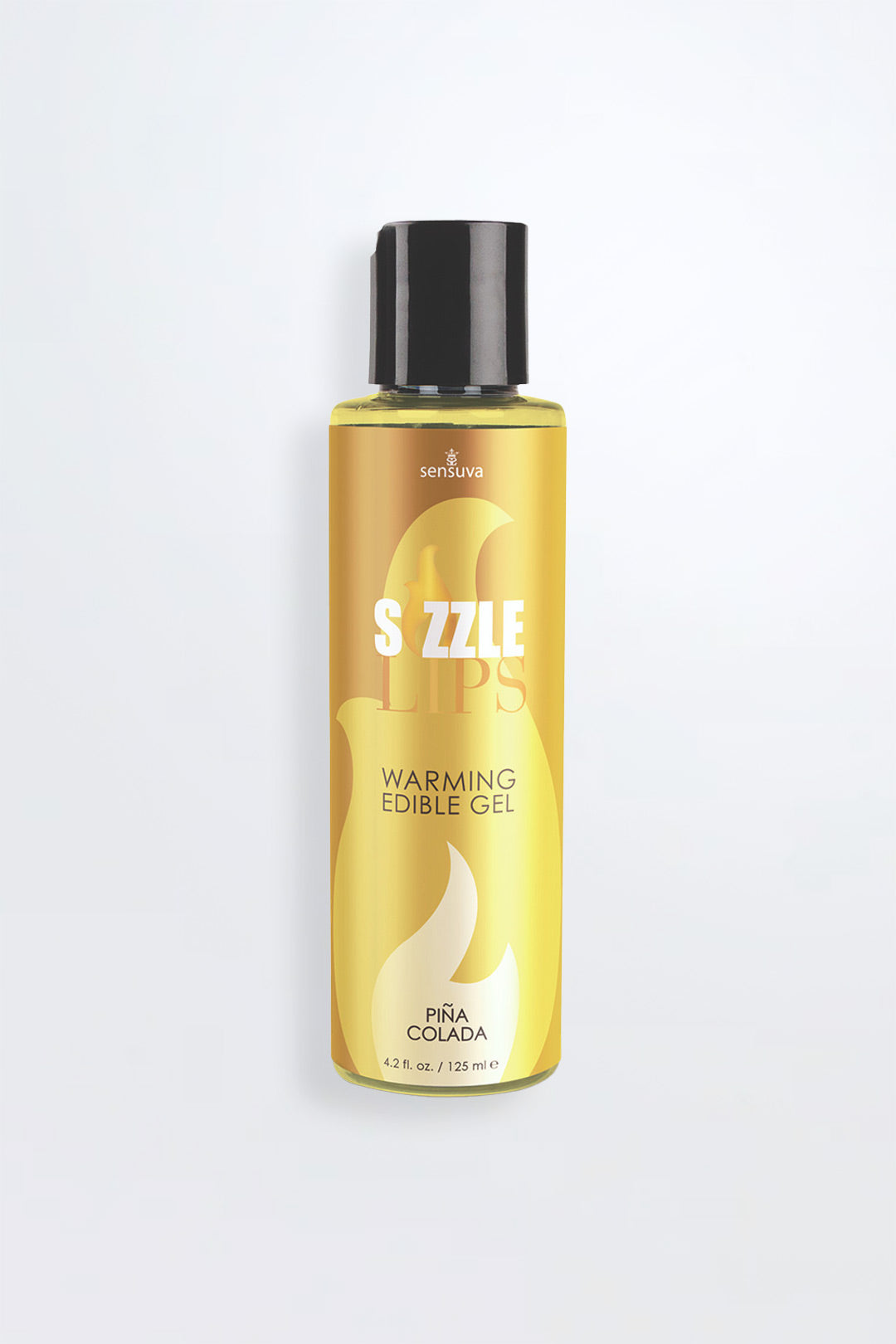 Sizzle Lips is an edible warming gel that feels hot when you blow on it.  It can be massaged it into a small area of the body, blow on it to get warm and then kiss lick it all off!  The more you rub it in, the warmer it feels. Sizzle Lips is an especially great tasting, glycerin-based gel with no after-taste.