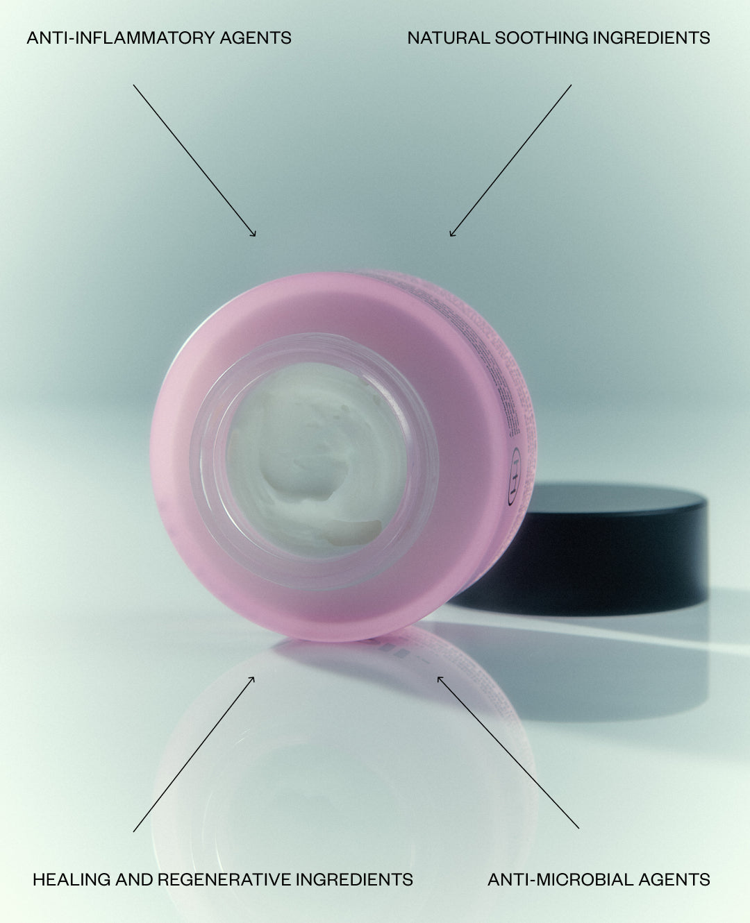Capric/Caprylic Triglycerides, Aqua, Beeswax, Glyceryl Stearate, Glycerin, Lanolin, Cetearyl Alcohol, Zinc Oxide, Aloe Barbadensis (Aloe Vera) Leaf Juice, Helianthus Annuus (Sunflower) Seed Oil, Arnica Montana (Arnica) Flower Extract, Cucumis Sativus (Cucumber) Seed Oil, Chlorhexidine Digluconate, Phenoxyethanol, Ethylhexylglycerin, Mentha Piperita (Peppermint) Oil, Tocopherol, Honey (Manuka), Maltodextrin, Silica, Methylglyoxal, Chamomilla Recutita (Chamomile) Flower Extract, Hamamelis Virginiana (Witch Hazel) Leaf Extract.