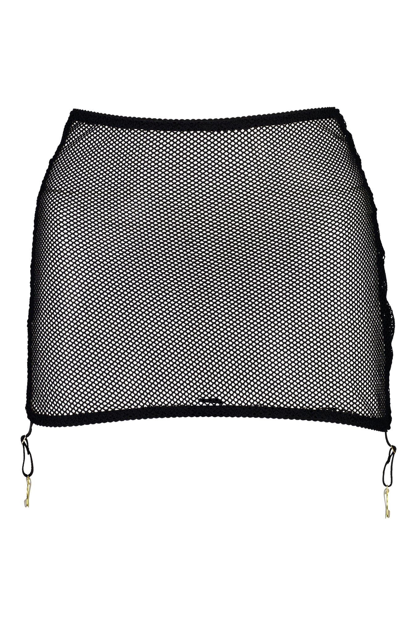 - Sheer Fishnet Fabric: Our Tatiana Spanking Skirt Suspender is crafted from exquisite fishnet fabric, teasingly sheer and tantalisingly transparent. It leaves just enough to the imagination while letting your confidence shine through.