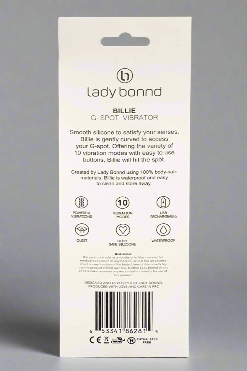 Discover deeply satisfying pleasure with Billie, a gently curved vibrator designed to reach and delight your G-spot. Crafted with smooth, body-safe silicone, Billie brings effortless comfort and luxurious sensation to every experience.